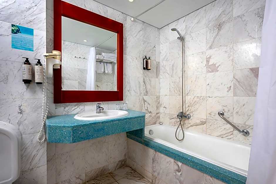 The spacious double room provides air conditioning, soundproof walls, a balcony with sea views as well as a private bathroom featuring a bath.